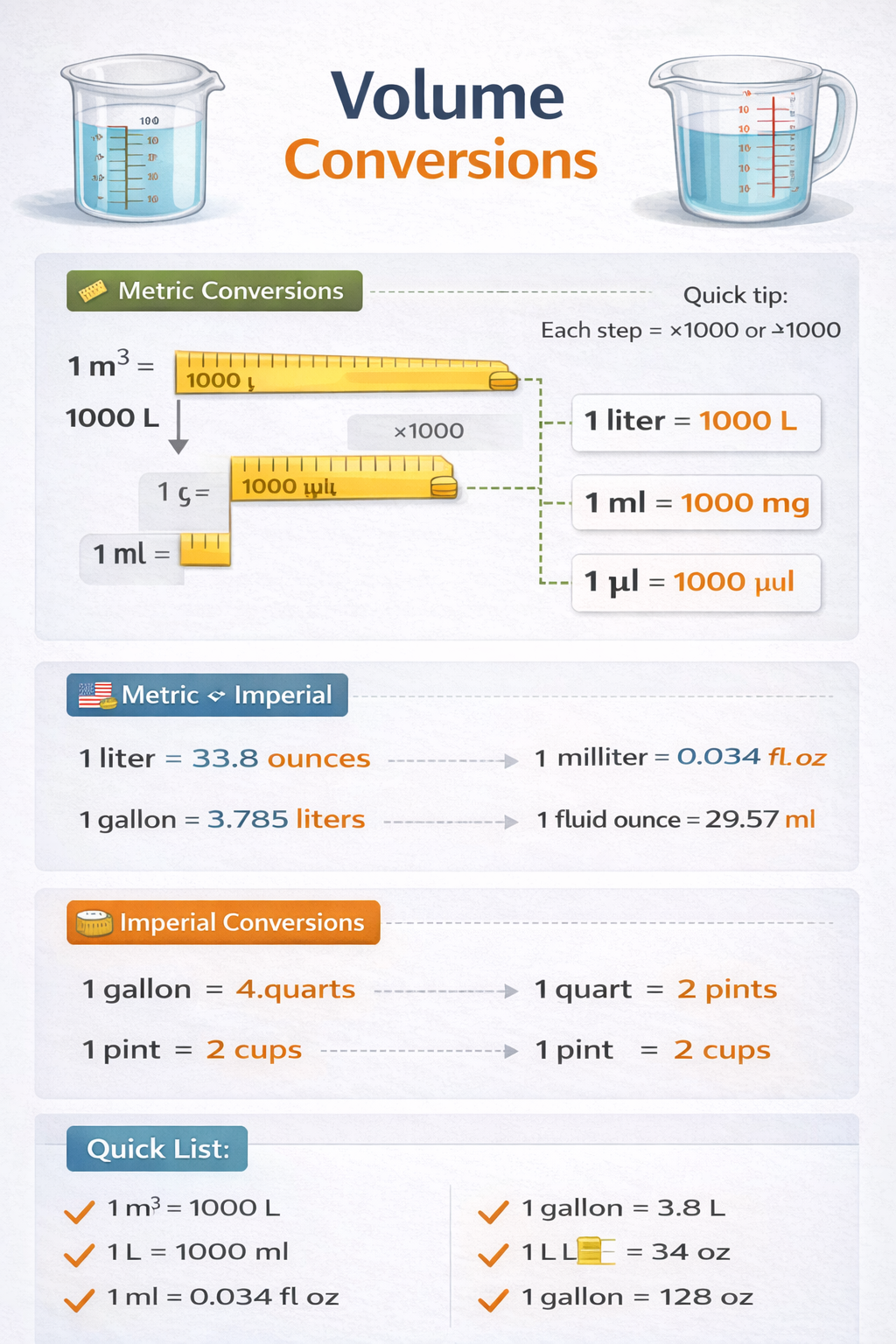 Volume conversion is used to convert units like liters, milliliters, gallons, and cups. It is essential for cooking, science, and everyday measurements.
